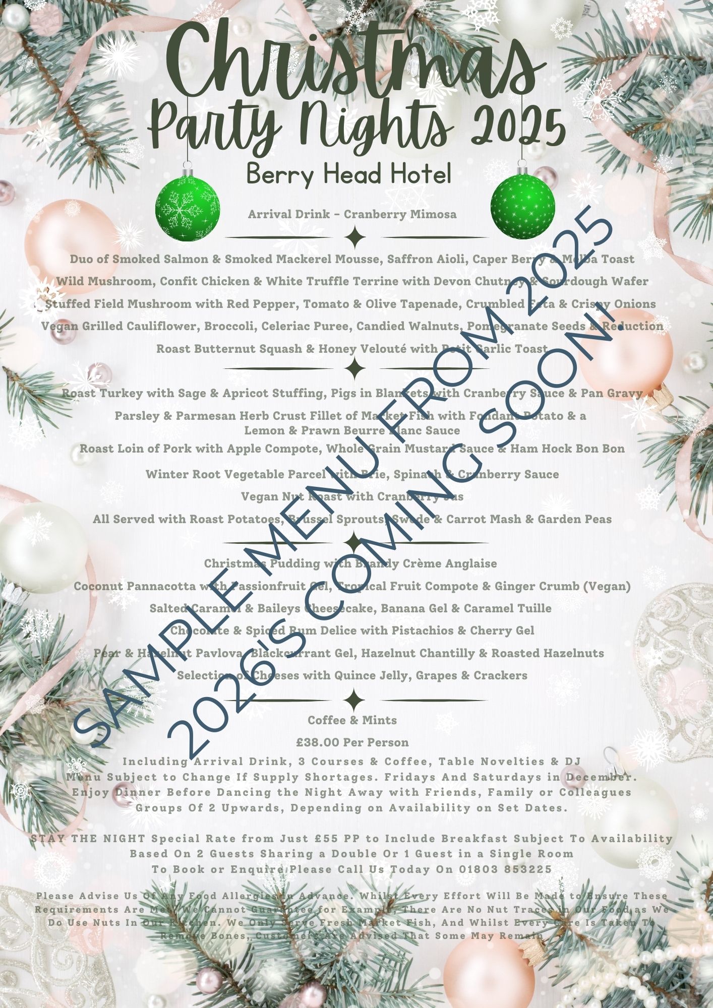 Stay tuned for 2026's menu costing £39.00 Per Person