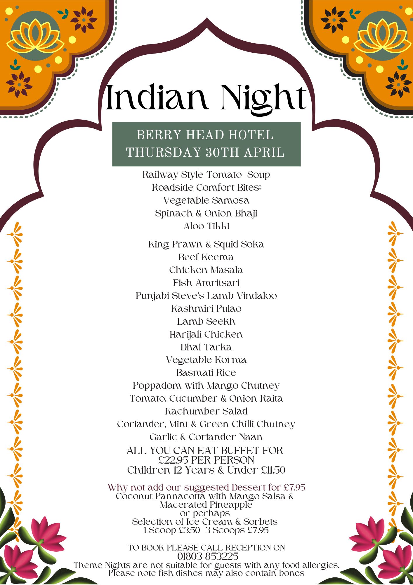 Theme Nights are not suitable for guests with any food allergies.