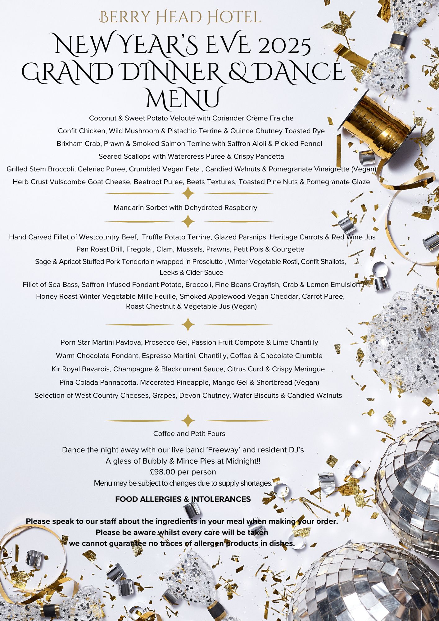 Dance the night away with our live band ’Freeway’ and resident DJ’s