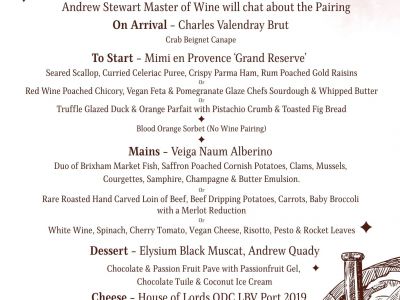 Starter, Main & Dessert Courses Paired with a Sample Wine