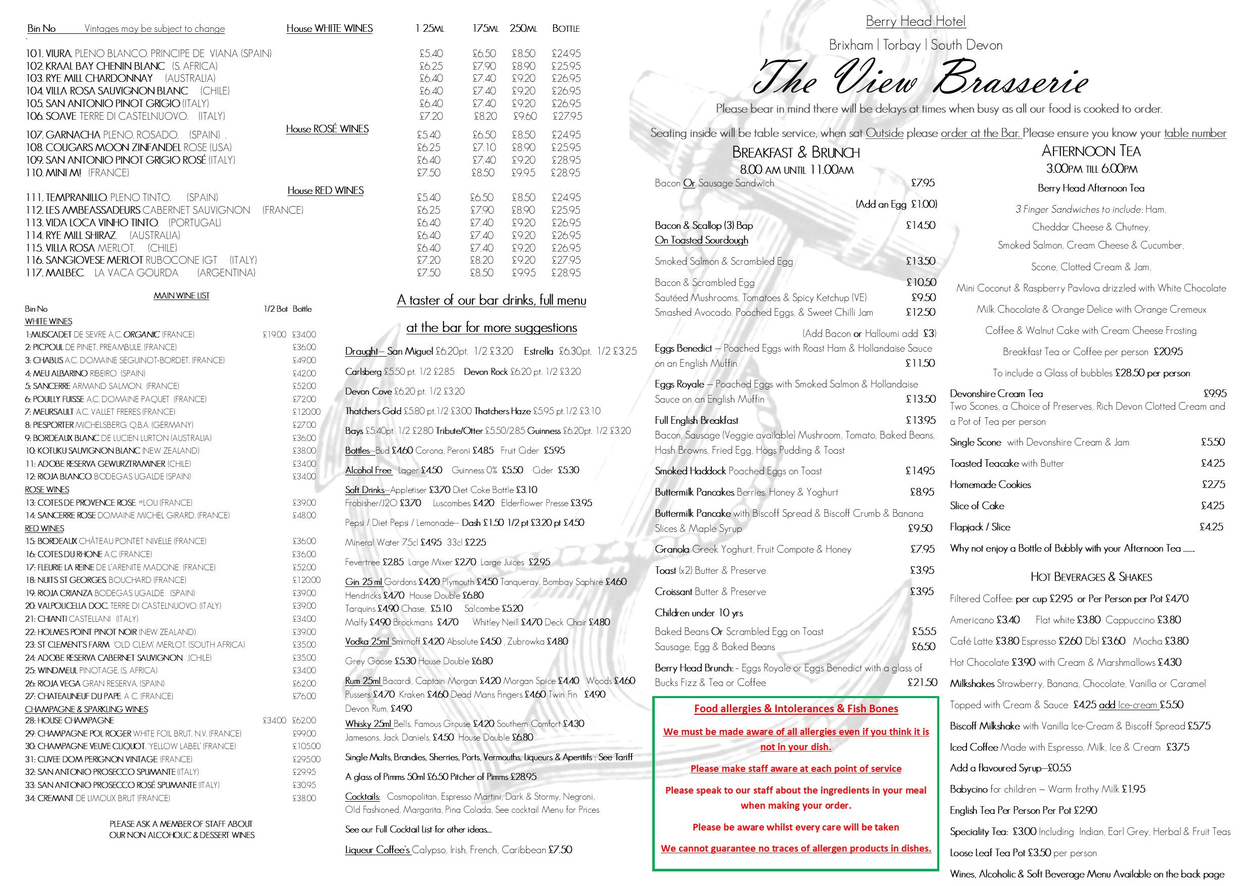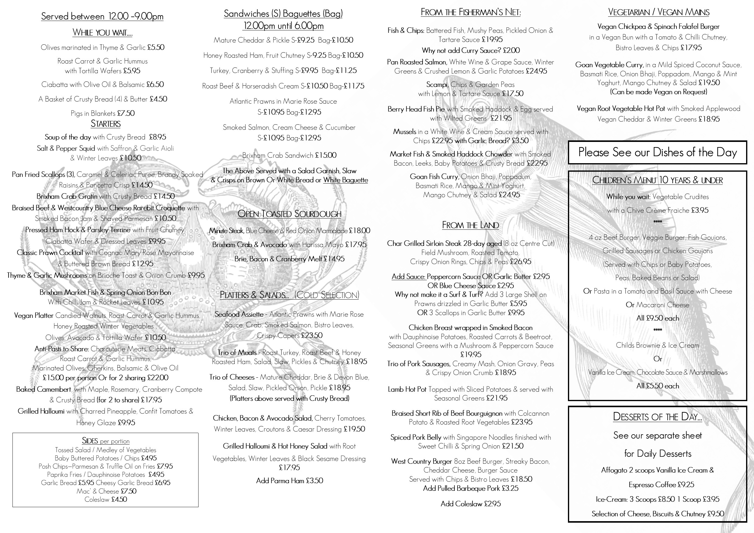 So much time and thought goes into our seasonal Brasserie menus; bursting with locally caught fish, meat and vegetarian dishes, we can guarantee to meet the requirements of any appetite. We are more than happy to cater for any special dietary requests and are also child friendly.